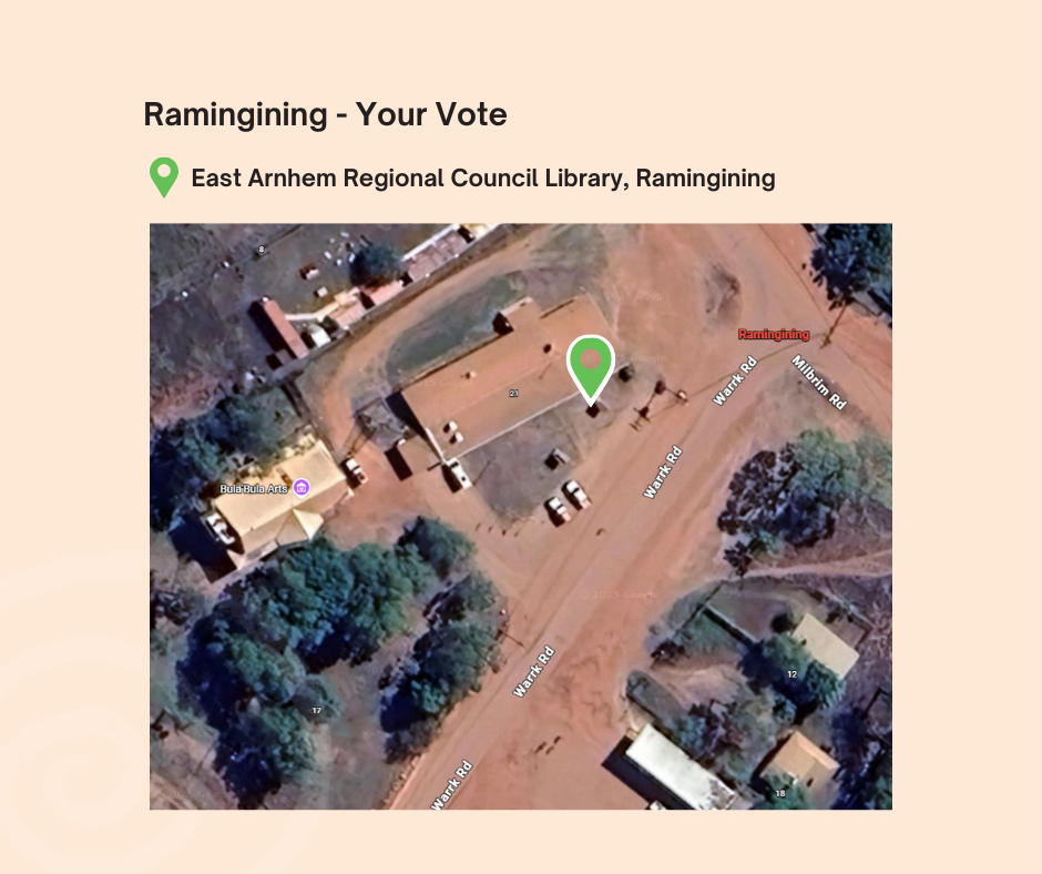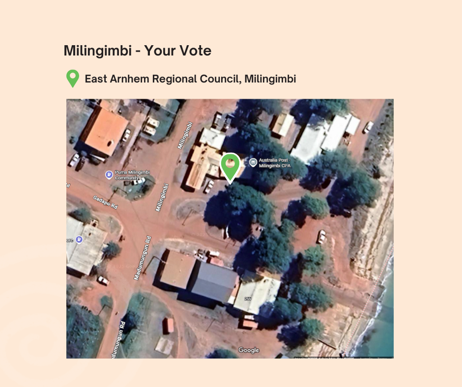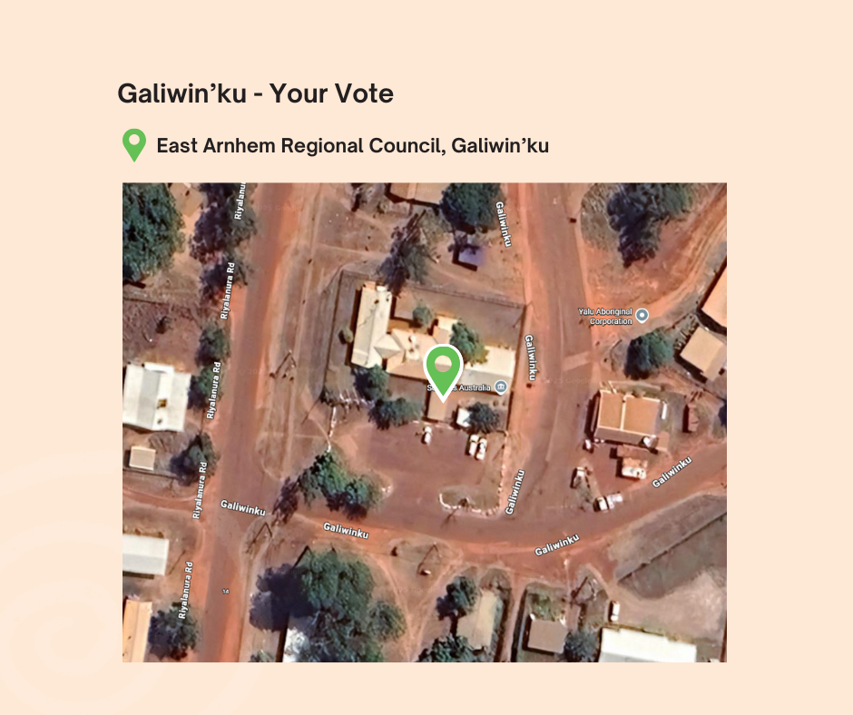 Please note that voting is not required for Gapuwiyak (Gumurr Miyarrka), Gunyangara (Gumurr Miwatj), and Yirrkala (Gumurr Miwatj).